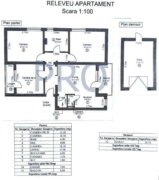 Este situat la parterul înalt al imobilului, deasupra garajului și are suprafața utilă totală de 95 mp compartimentată în: living, bucătărie, cămară,